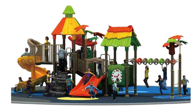 Пластиковые компоненты: горки, туннели, декоративные крышки и игровые панели (например, интерактивные циферблаты), а также скалодромоподобная зона — выполнены из нетоксичного инженерного пластика с UV-защитой, окрашены в массе, не выгорают и не трескаются; поверхность — гладкая, края — скруглённые для минимизации риска травм.