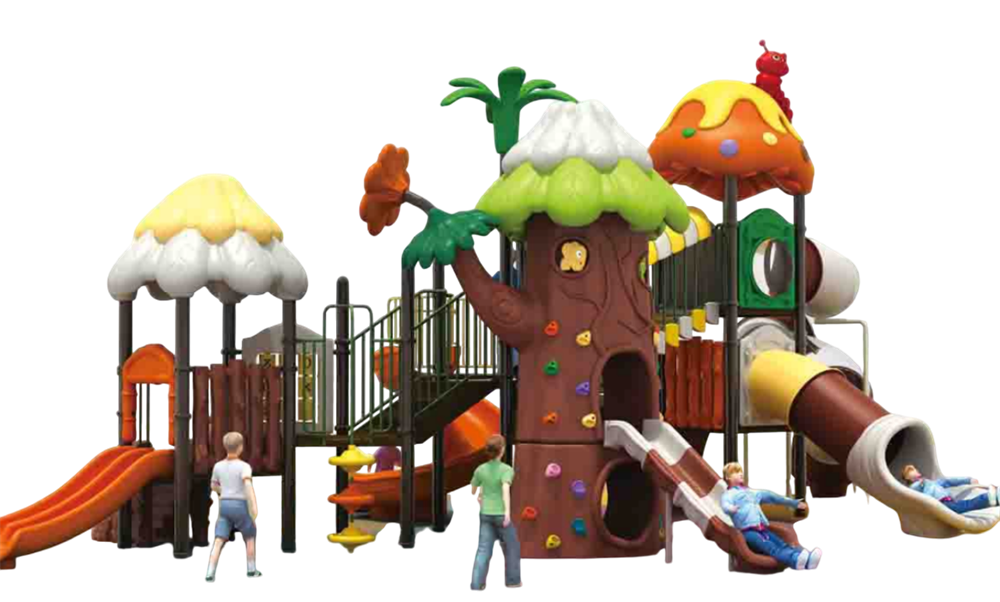 Пластиковые модули: включая тематические элементы в виде «волшебного дерева», закрытые и открытые горки, тоннели, скалодром с безопасным рельефом, интерактивные панели и обзорные окна — изготовлены из нетоксичного инженерного пластика с UV-защитой, окрашены в массе, не выгорают и не трескаются; гладкие поверхности и скруглённые края исключают острые выступы и снижают риск травм.