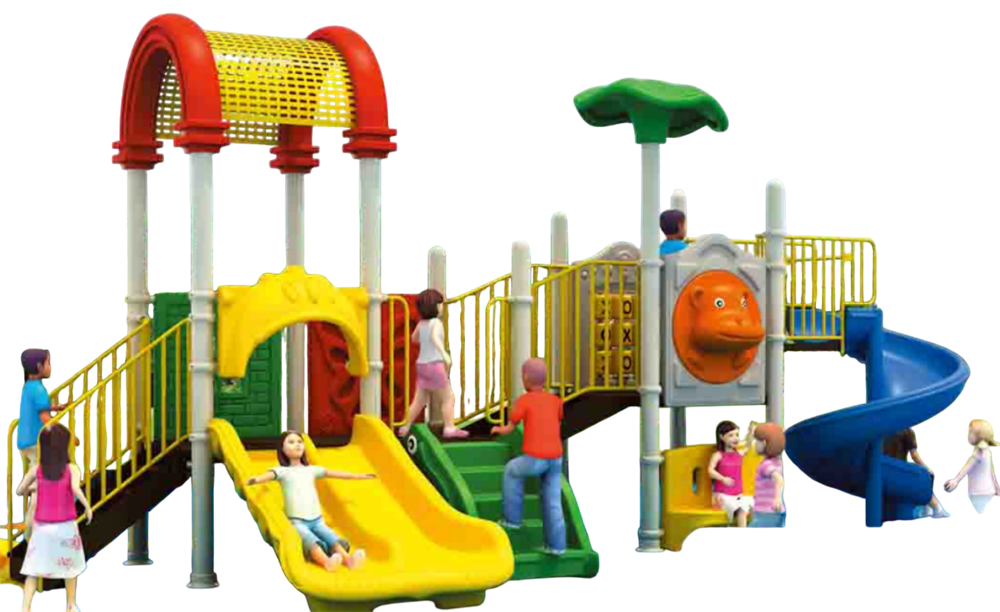 Горки: двойная прямая и изогнутая скаты из ударопрочного пластика с UV-защитой.