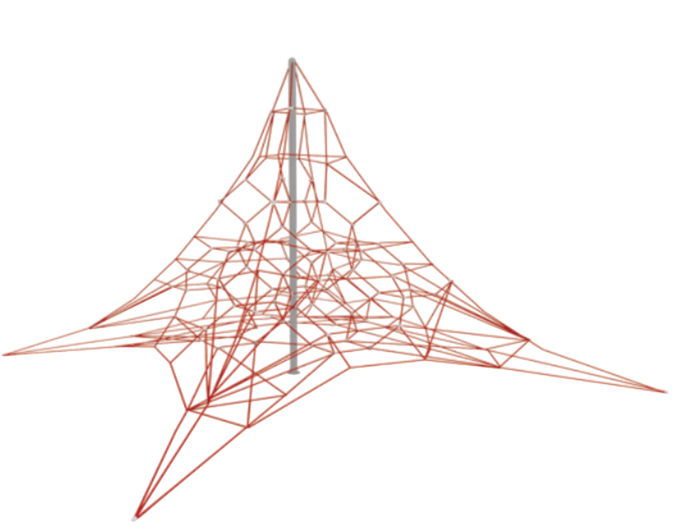 Эластичные тросы обеспечивают мягкое амортизирующее воздействие, а высота 5000 мм позволяет реализовать многоуровневый сценарий лазания при полном соблюдении норм безопасности.