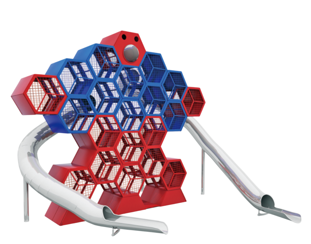 Комплекс отлично подойдёт для крупных общественных пространств: парков, жилых кварталов, образовательных учреждений. Рассчитан на одновременную игру 25+ детей. 🏃♂️🛝🤸♀️
