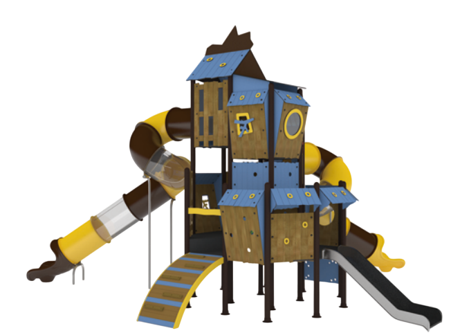 В составе: горки, сетки, башни, мостики, тоннели, лазалки, ролевые зоны и тематические модули — полноценный игровой город.