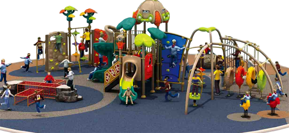 Пластиковые компоненты и игровые модули: сочетание закрытых тоннелей, горок (прямых и волнообразных), тематических элементов и интерактивных панелей выполнено из нетоксичного инженерного пластика с UV-защитой, окрашено в массе, не выгорает и не трескается; поверхности — гладкие, края — скруглённые, что снижает риск травм.