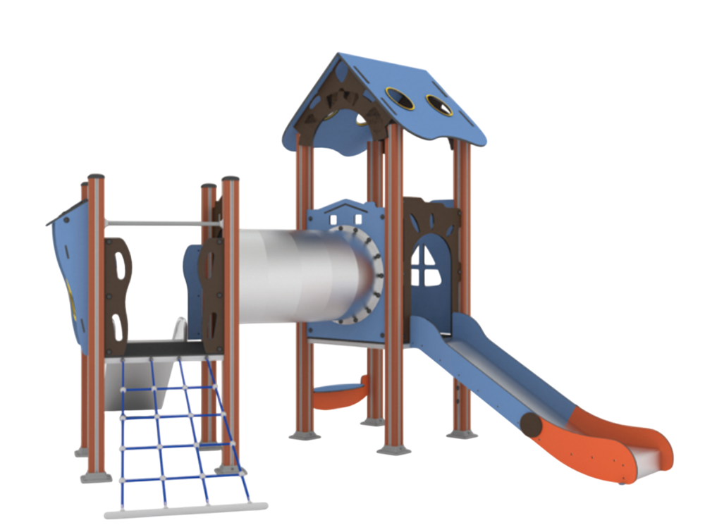 Горки и элементы декора выполнены из инженерного пластика LLDPE, безопасного для детей, не трескающегося, устойчивого к УФ и выгоранию.