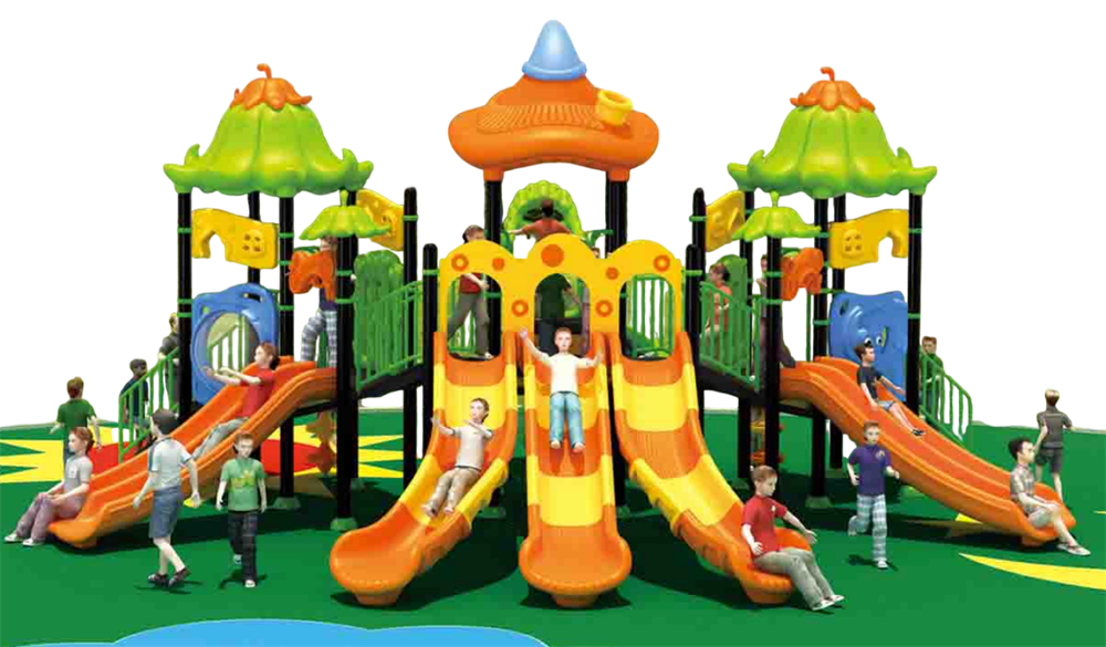 Компактную, насыщенную игровую зону с несколькими скользящими спусками и интерактивными элементами.