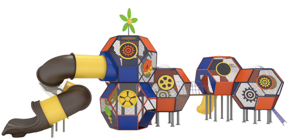 Включает башни, мостики, лазалки, горки, канаты, тоннели, ролевые зоны и интерактивные панели — игровая среда, стимулирующая фантазию и движение.
