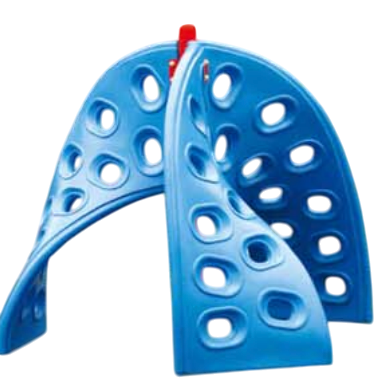Скалодром выполнен в форме трёхмерного арочного купола с гладкими изгибами и крупными зацепами — дети могут карабкаться с любой стороны.