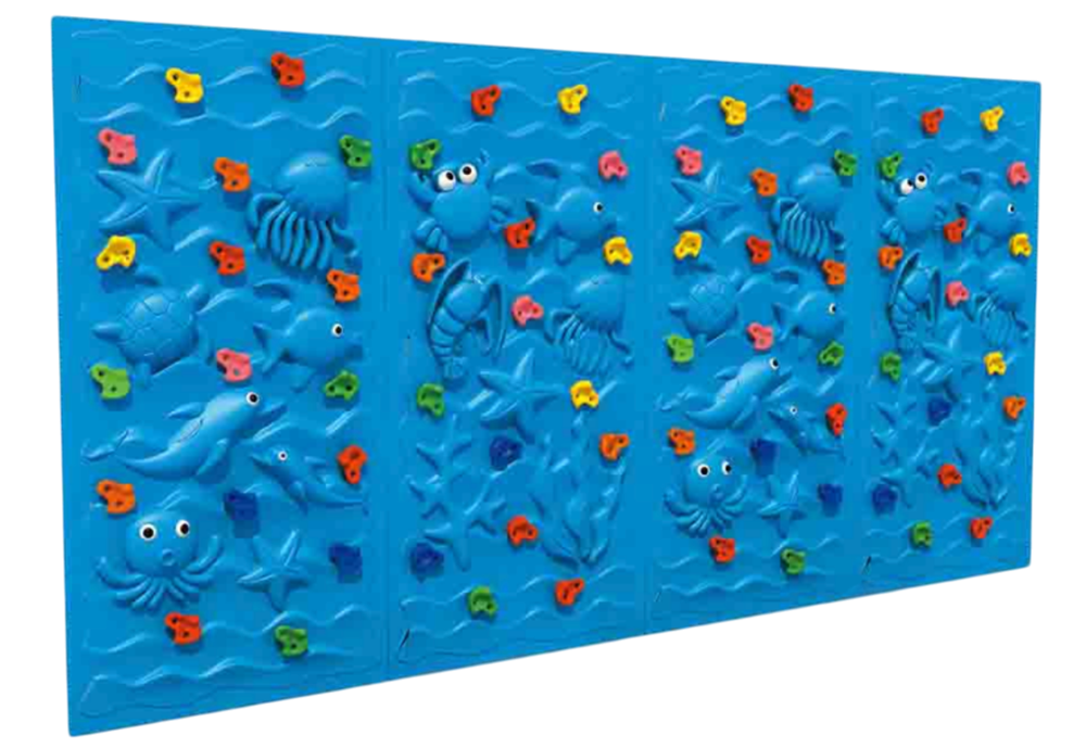 Скалодром состоит из четырёх ярко-синих панелей с 3D-рельефом на морскую тематику — изображены дельфины, крабы, черепахи, осьминоги и морские звезды.