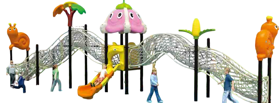 Пластиковые элементы (горка, декоративные фигуры — улитка, кукуруза, медуза, рыбка) произведены из импортного LLDPE пластика — нетоксичны, устойчивы к выцветанию и механическим повреждениям.