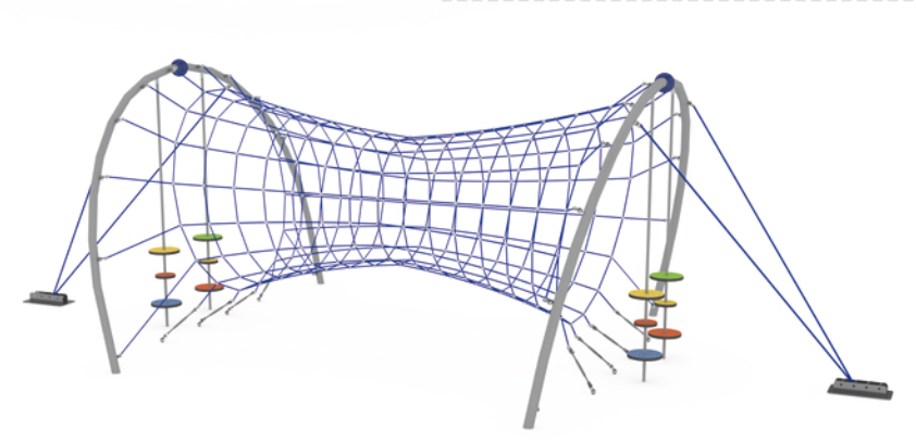 Высота конструкции (3000 мм) безопасна для детей младшего и среднего возраста, а мягкая амортизация тросов снижает нагрузку на суставы и снижает риск травм.